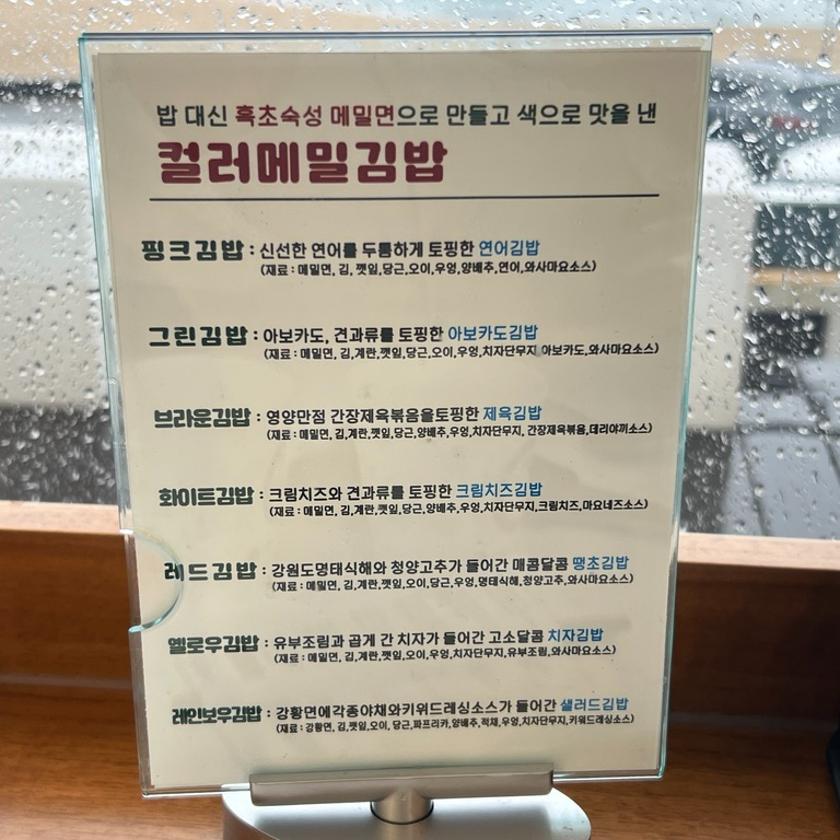 김밥을 선택하기가 어려웠는데 재료가 어떤 것이 들어간 지 자세하게 적혀있어서 고르기가 쉬웠다.