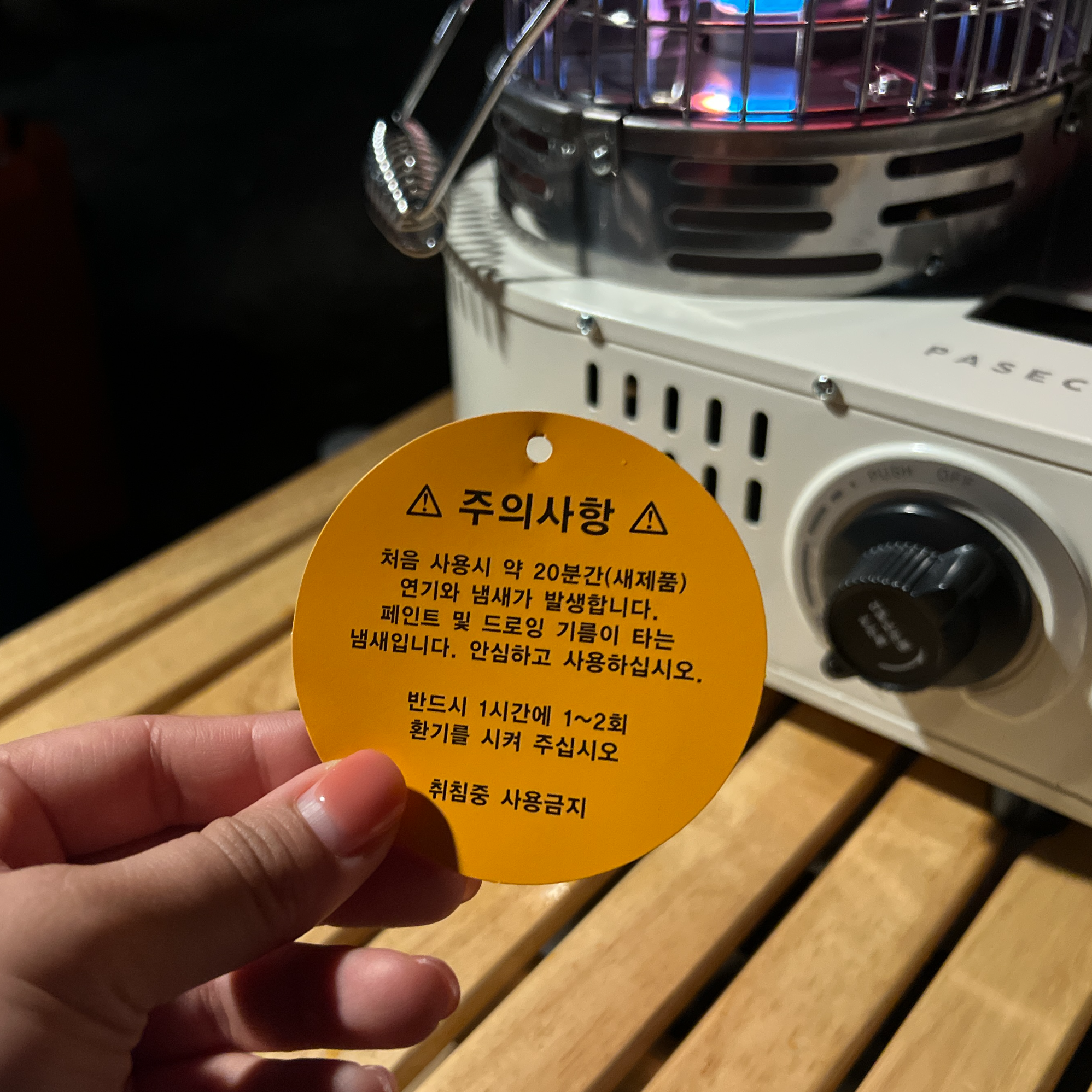 밖에서 사용하는 경우가 아니라면 반드시 1시간에 1~2회 환기를 시켜줘야 한다.(일산화탄소 발생!)