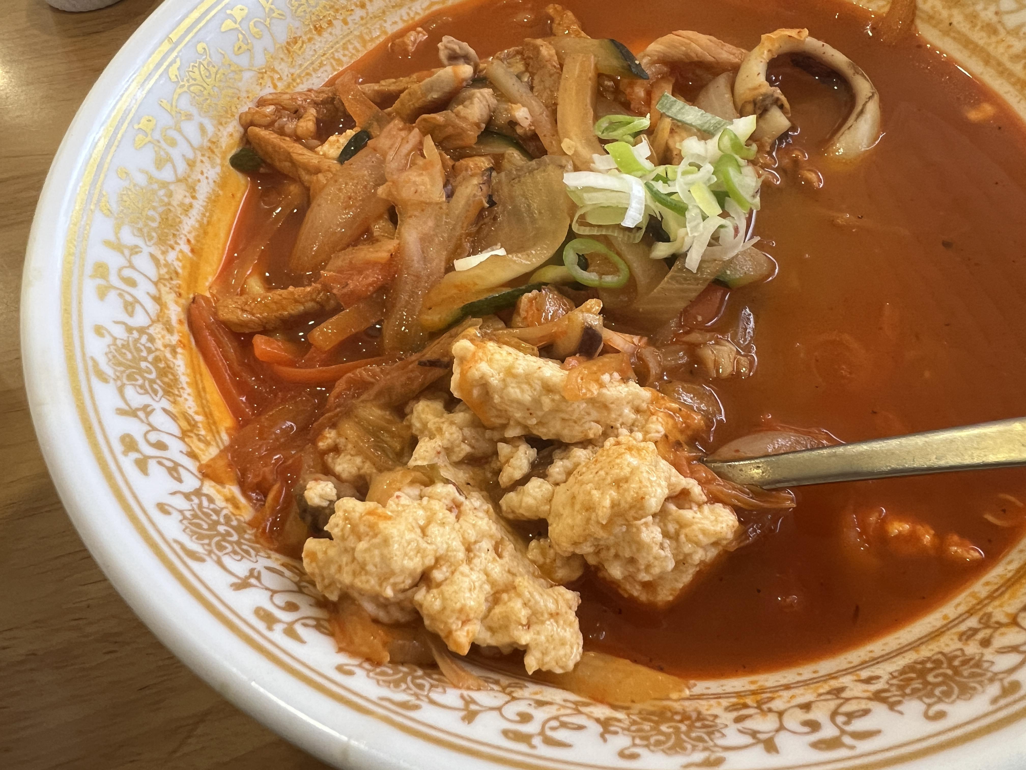 중식면을 그다지 좋아하지 않는 편이라 밥으로 시켰다. 초당순두부가 가득 들어가 있으며 재료는 엄청 신선했다. 씹는 식감에서 느껴지는 그런 신선한 맛. 안에는 오징어와 해삼 등 식재료들이 '나 신선해요' 외치고 있었다. 그래서 재료에 그 짬뽕 국물 맛이 덜 스며든 기분? 그렇지만 신선한 재료를 썼다는 것이 참 메리트 있었다.